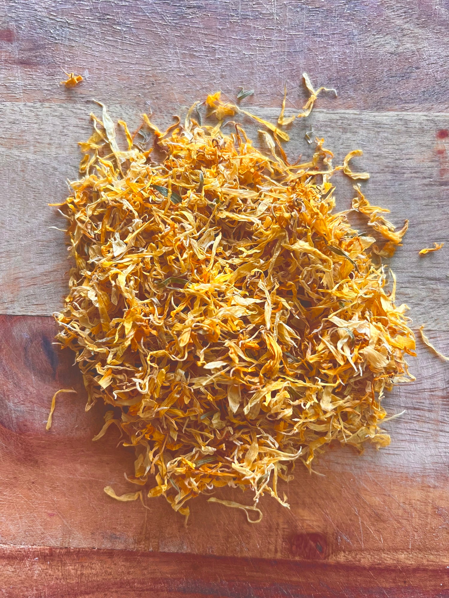 Calendula delivers a light, citrusy flavor. Smoking the herb can be very invigorating. It supports the other herbs by making the blend more smokable.