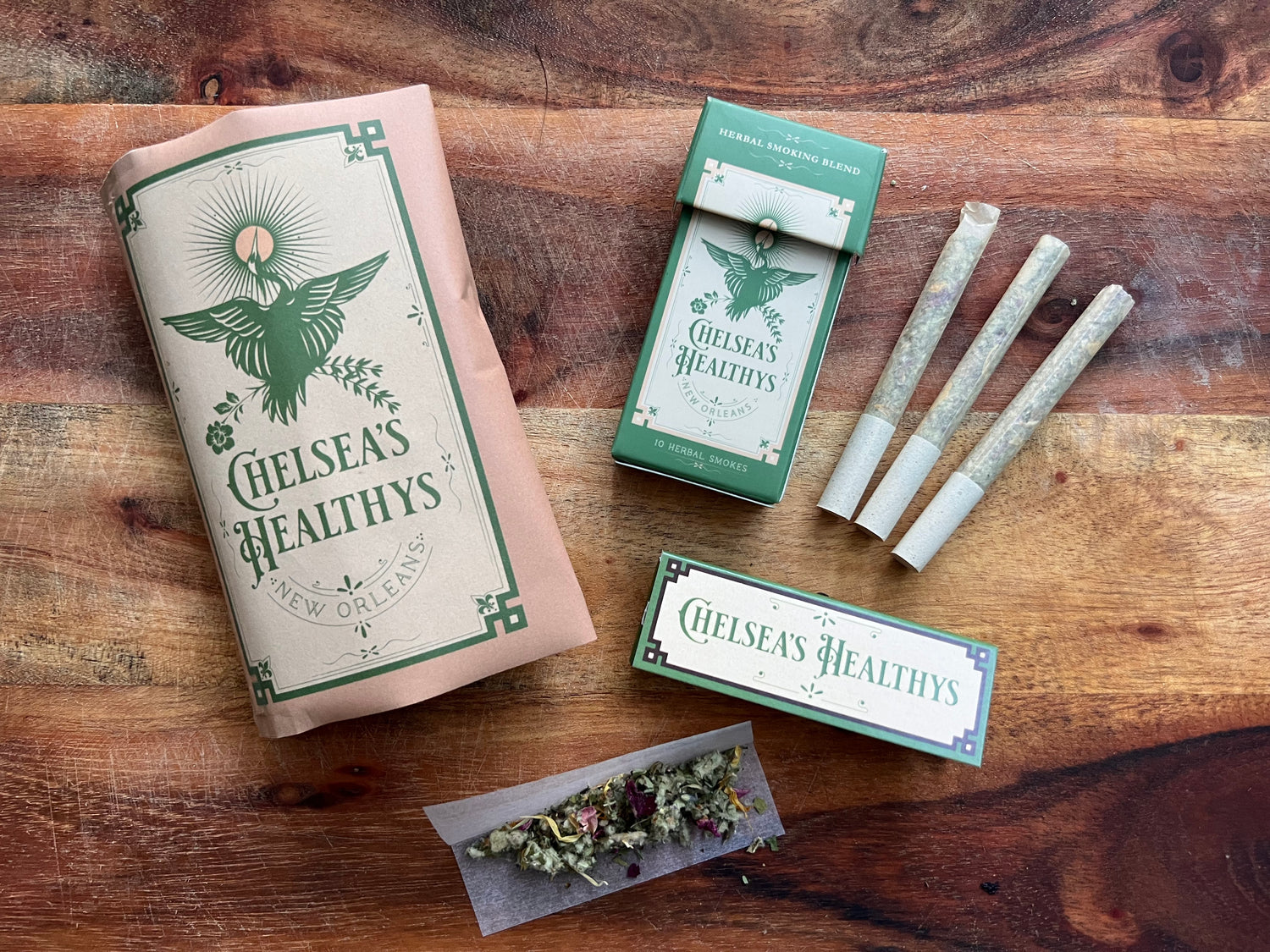 Chelsea's Healthys organic smoking blend is a tobacco-free alternative that can be enjoyed by itself or with your favorite greens. Each pack is handcrafted with love from my home in New Orleans.